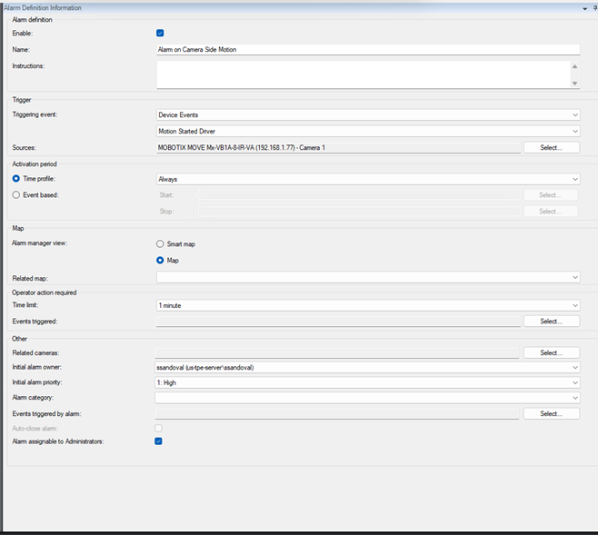 Initial alarm owner: (user – name) ejemplo: ssandoval