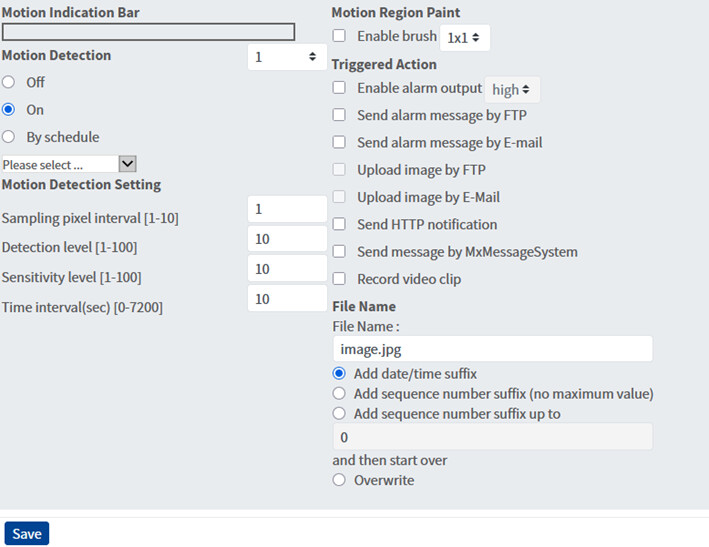 1.- En tu cámara move ir a System –> Events –> Motion Detection y habilitar la analítica de “Detección de Movimiento”